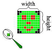 Размер (size) изображения, хранящегося в файле, задается в виде числа пикселов по горизонтали (width) и вертикали (height). Для примера, оптимальное разрешение 15-дюймового монитора, как правило, составляет 1024x768.