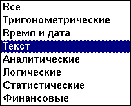 Выбор соответствующего раздела приводит к отображению в левой части окна списка функций из данной категории. Если выделить одну из функций, то вкладка Помощь в правой части окна отобразит описание данной функции. После того, как пользователь убедится, что выбрана именно нужная функция, следует нажать кнопку с изображением стрелки в нижней части окна. При этом имя функции будет скопировано в поле редактирования формулы, а подсказка будет заменена на вкладку Править, предоставляющую возможность ввода аргументов выбранной функции. Если аргументом является содержимое какой-либо ячейки, то для ввода ее адреса достаточно щелкнуть кнопкой мыши по требуемой ячейки и адрес автоматически будет добавлен в формулу.