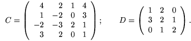Maxima позволяет легко манипулировать матрицами. В следующем примере задаются две матрицы, которые затем складываются (+) и перемножаются (.):