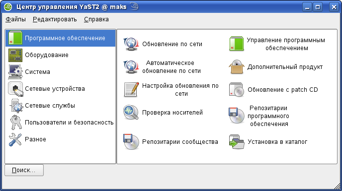 YaST содержит различные модули для настройки Вашей системы. Они разделены на следующие категории: