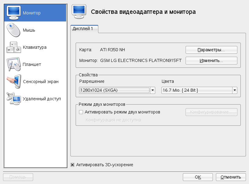 Нажмите в YaST +. SaX2 проверит ресурсы системы и покажет диалог .