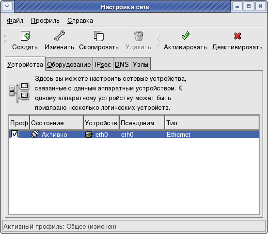 Замечание Программа установки сама выявляет поддерживаемые устройства Ethernet и предлагает вам настроить их. Если вы настраивали устройства Ethernet во время установки, они показываются в списке оборудования на вкладке Оборудование (Hardware).