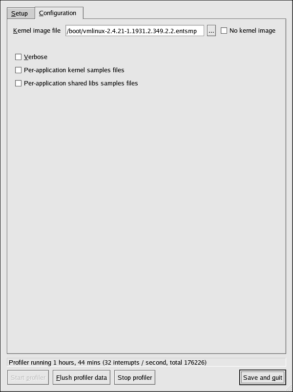 Некоторые параметры OProfile можно определить в графическом интерфейсе. Чтобы его запустить, выполните в приглашении оболочки от имени root команду oprof_start.
