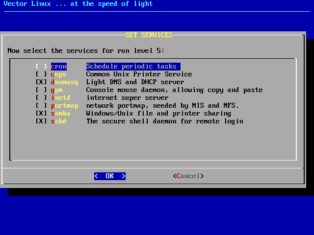 для некоторых пунктов настройки VASM, таких как конфигурирование X сервера, автопоиска оборудования и т.д. безопаснее или даже является необходимостью использовать текстовый режим. В подобной ситуации VASM предупредит, что подобные настройки недоступны из графического интерфейса.